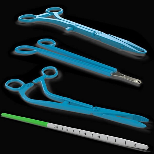 DISPOSABLE IUD INSERTION KIT - 1xPOZZI FORCEPS,1xCHERON FORCEPS, 1xLITTAUER SCISSORS &CH14 HYSTEROMETER PS323 BOX-10