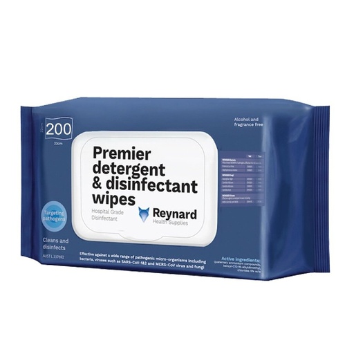 REYNARD PREMIER DETERGENT & DISINFECTANT WIPES 28 X 22CM SOFT PACK RHS299 - Pack of 200