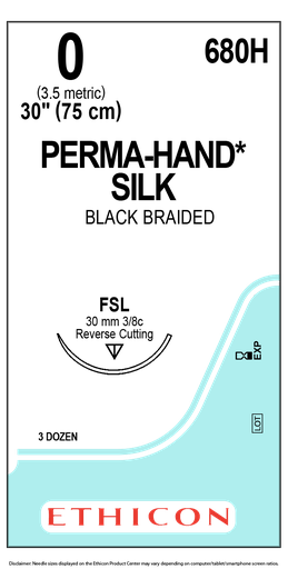 PERMA-HAND SILK SUTURES BLACK 75CM 0 FSL 30MM - 36 (680H)
